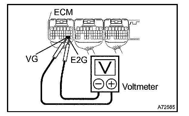 2. Connect the positive tester probe of the voltmeter to the terminal VG of the ECM and the negative tester probe of the voltmeter to the terminal E2G of the ECM.