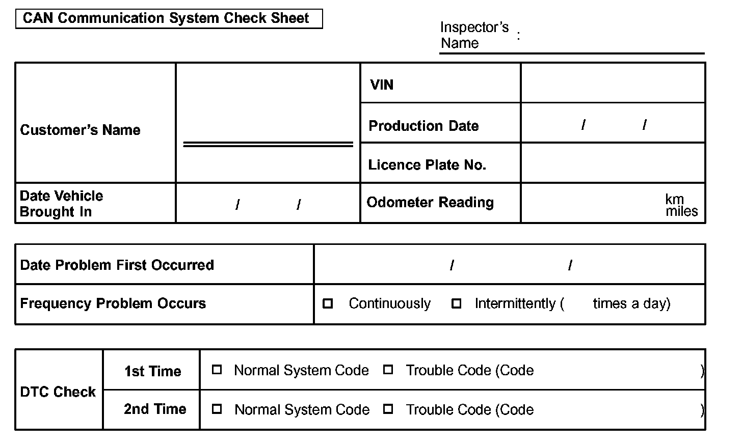 CAN Communication System Check Sheet: