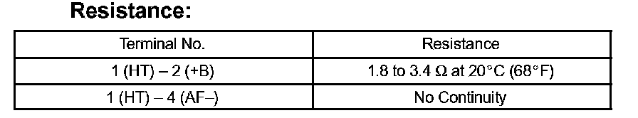 Using an ohmmeter, measure the resistance between the terminals.