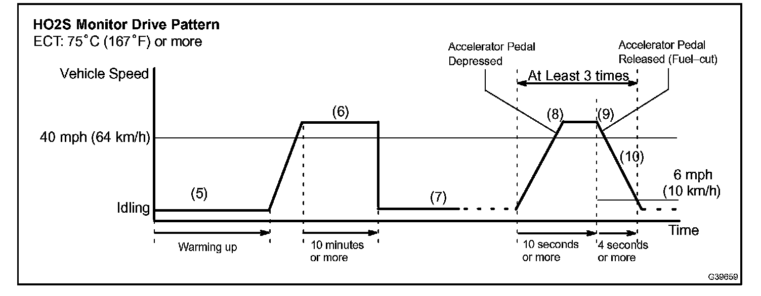 6. Drive the vehicle at 40 mph (64 km/h) or more for at least 10 minutes.