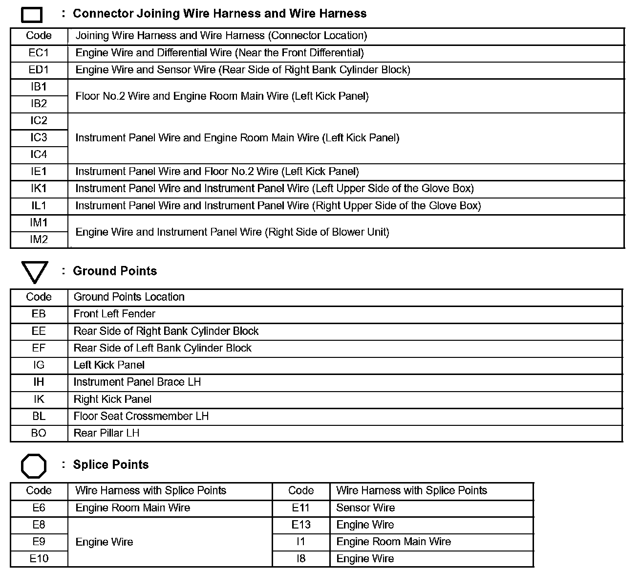 Locations: The locations of components, connectors, ground points, and splices referred to within these diagrams can be found at Vehicle Locations. Locations