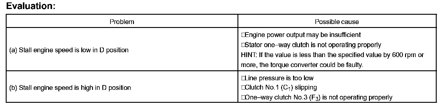 The object of this test is to check the overall performance of the transmission and engine by measuring the stall speeds in the D position.