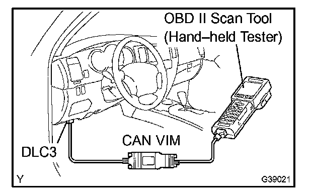 c. Connect the hand-held tester together with the Controller Area Network Vehicle Interface Module (CAN VIM) to the DLC3.