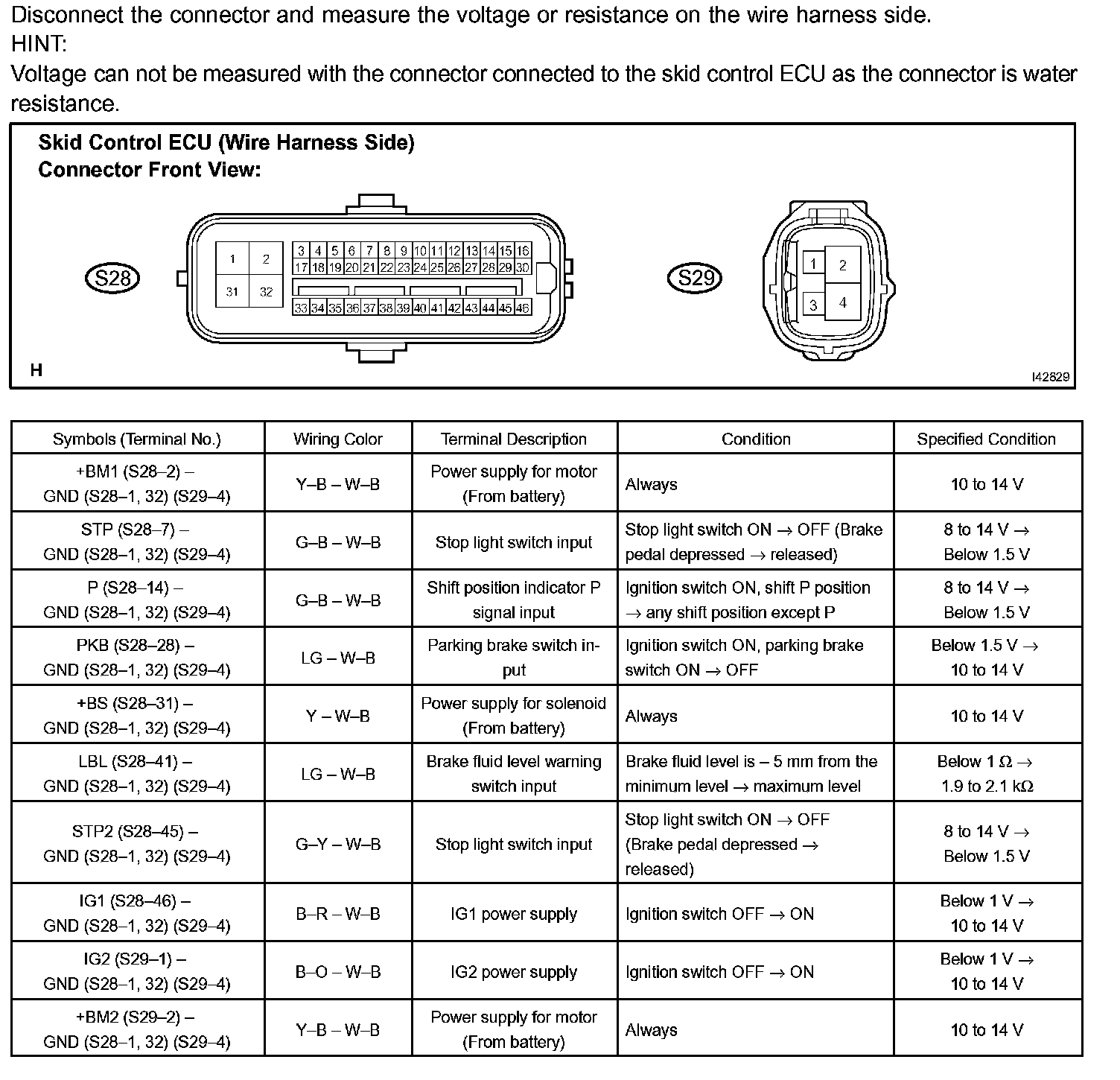 Terminals Of Control Module/Pinouts - Skid Control ECU: