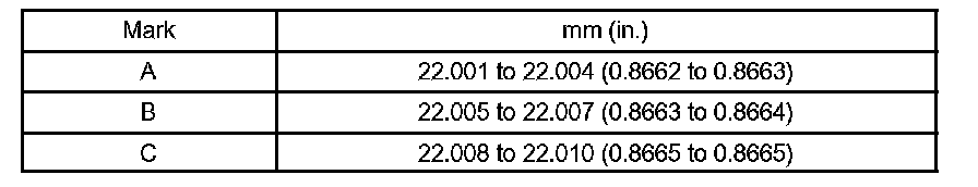 Piston pin hole inside diameter 22.001 to 22.010 mm (0.8662 to 0.8665 inch)