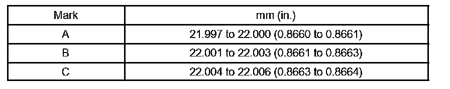 Piston pin diameter 21.997 to 22.006 mm (0.8660 to 0.8664 inch)