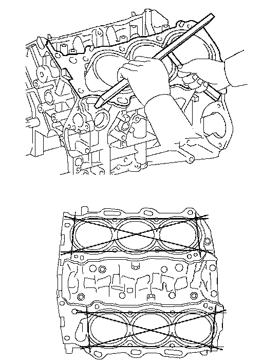 If the average diameter of 4 positions is greater than the maximum, replace the cylinder block.
