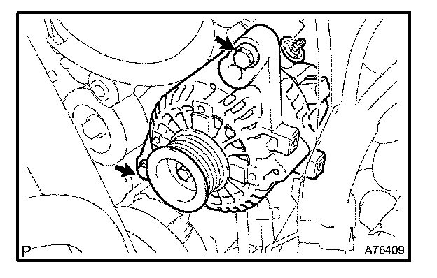 c. Remove the 2 bolts and generator assembly.