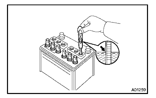 ON-VEHICLE INSPECTION1. CHECK BATTERY ELECTROLYTE LEVEL