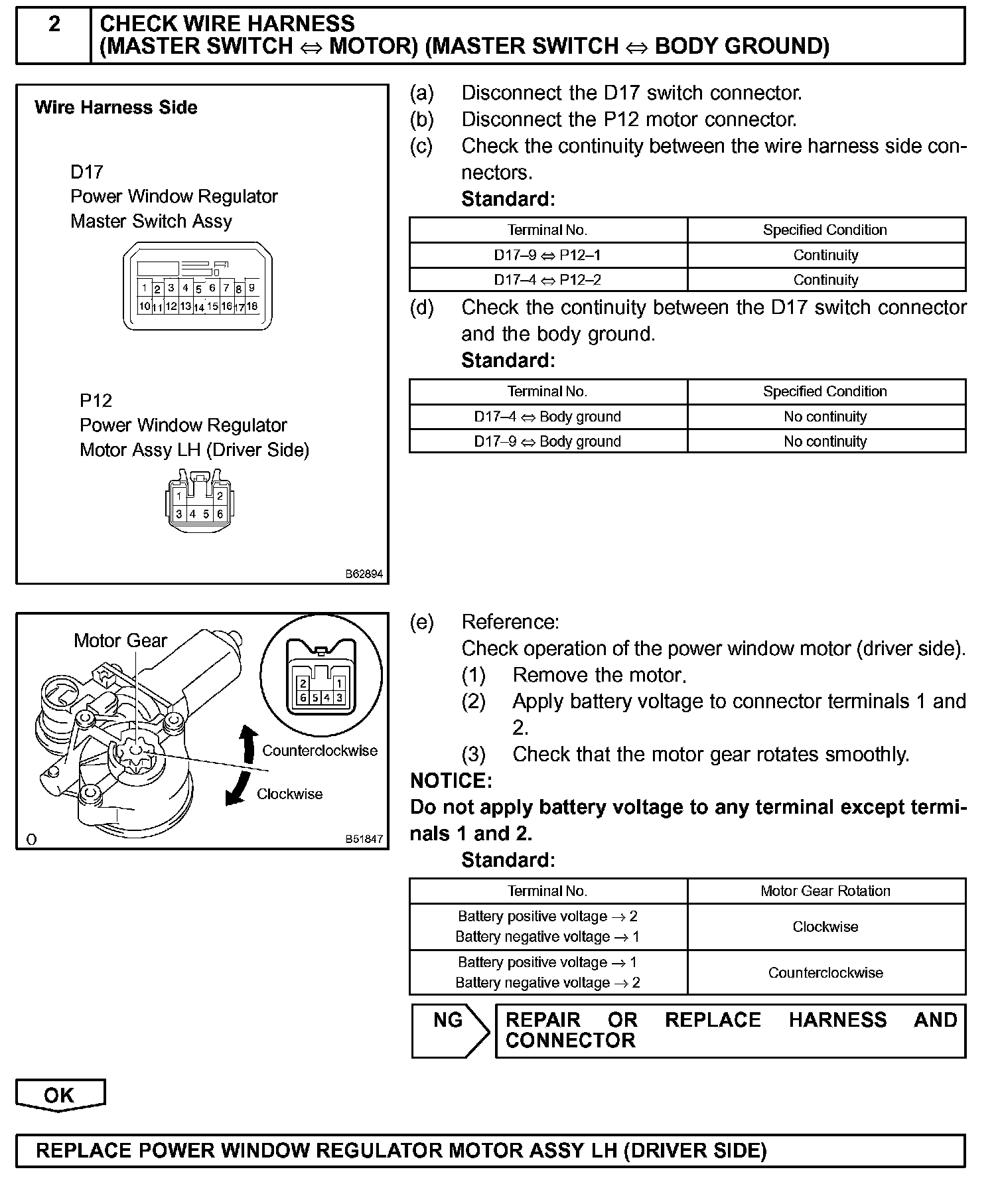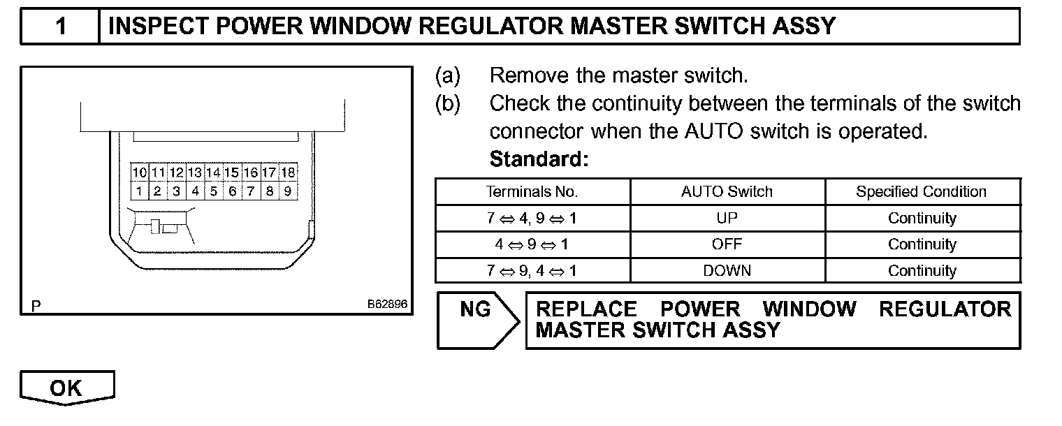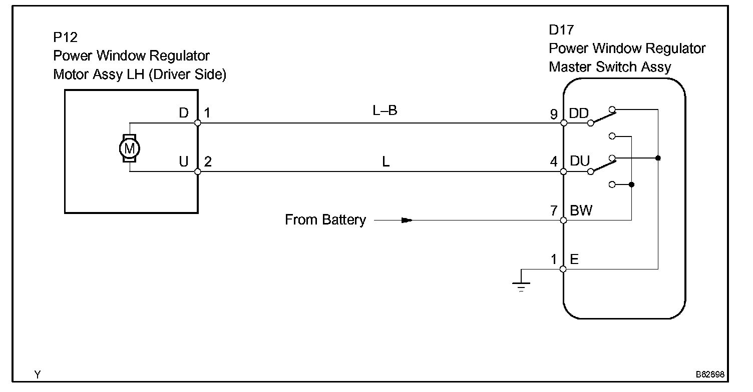 If the manual UP/DOWN function does not operate, the power window motor, the power window master switch or the wire harness is abnormal.