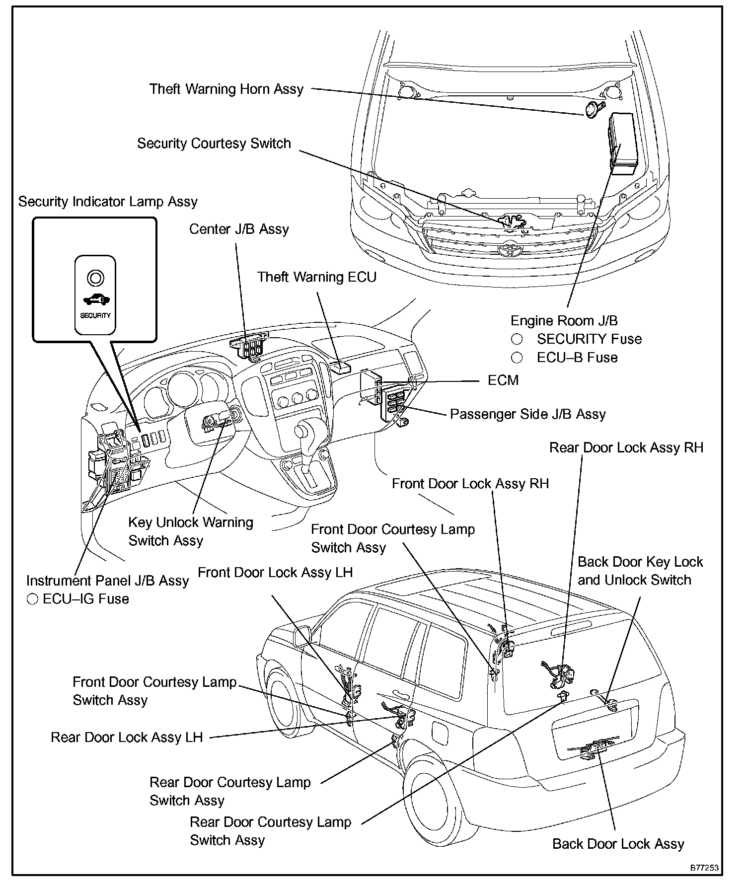 Hood Sensor/Switch (For Alarm): Locations