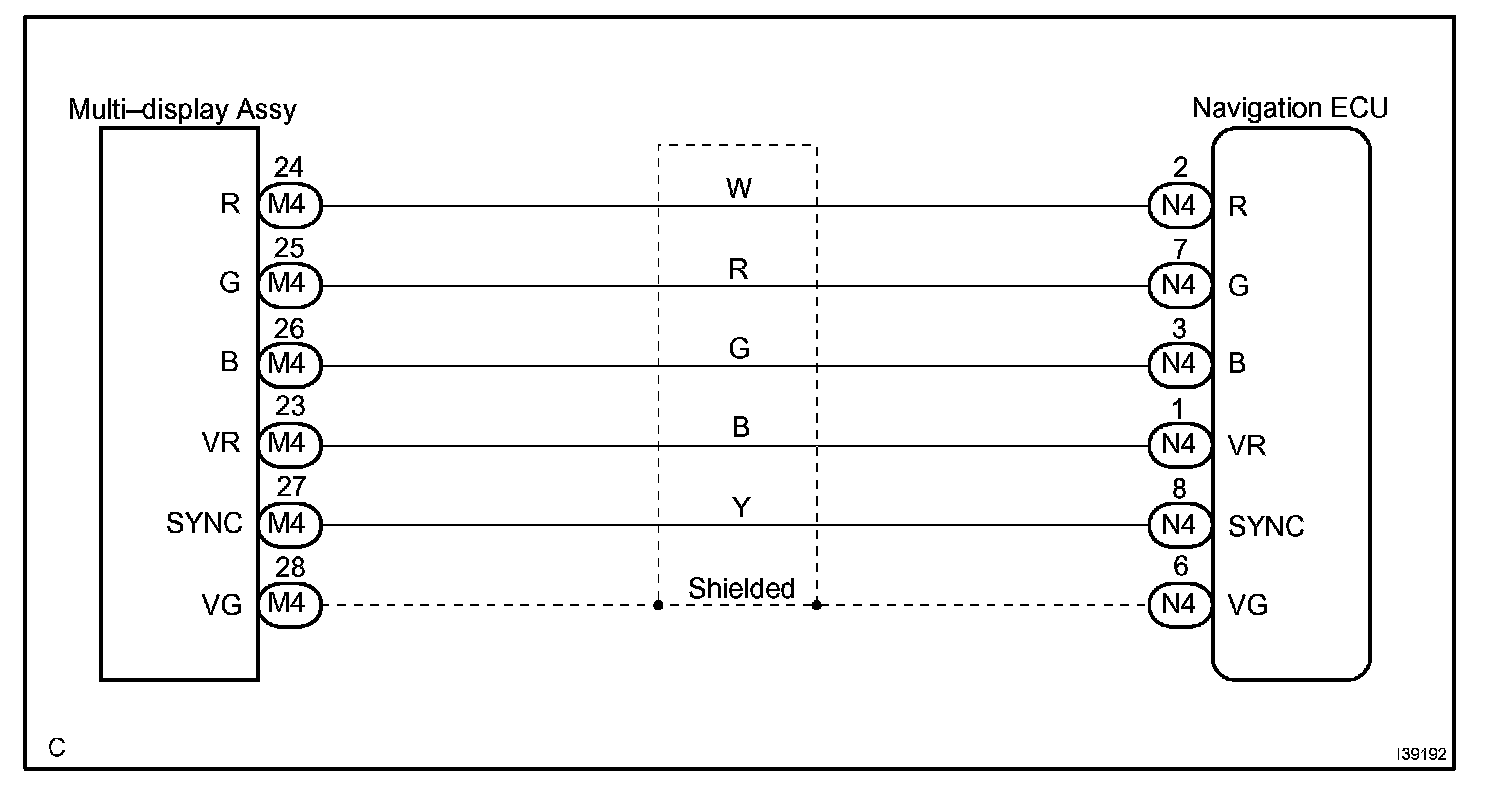 This is the display signal circuit from the navigation ECU to the multi-display.