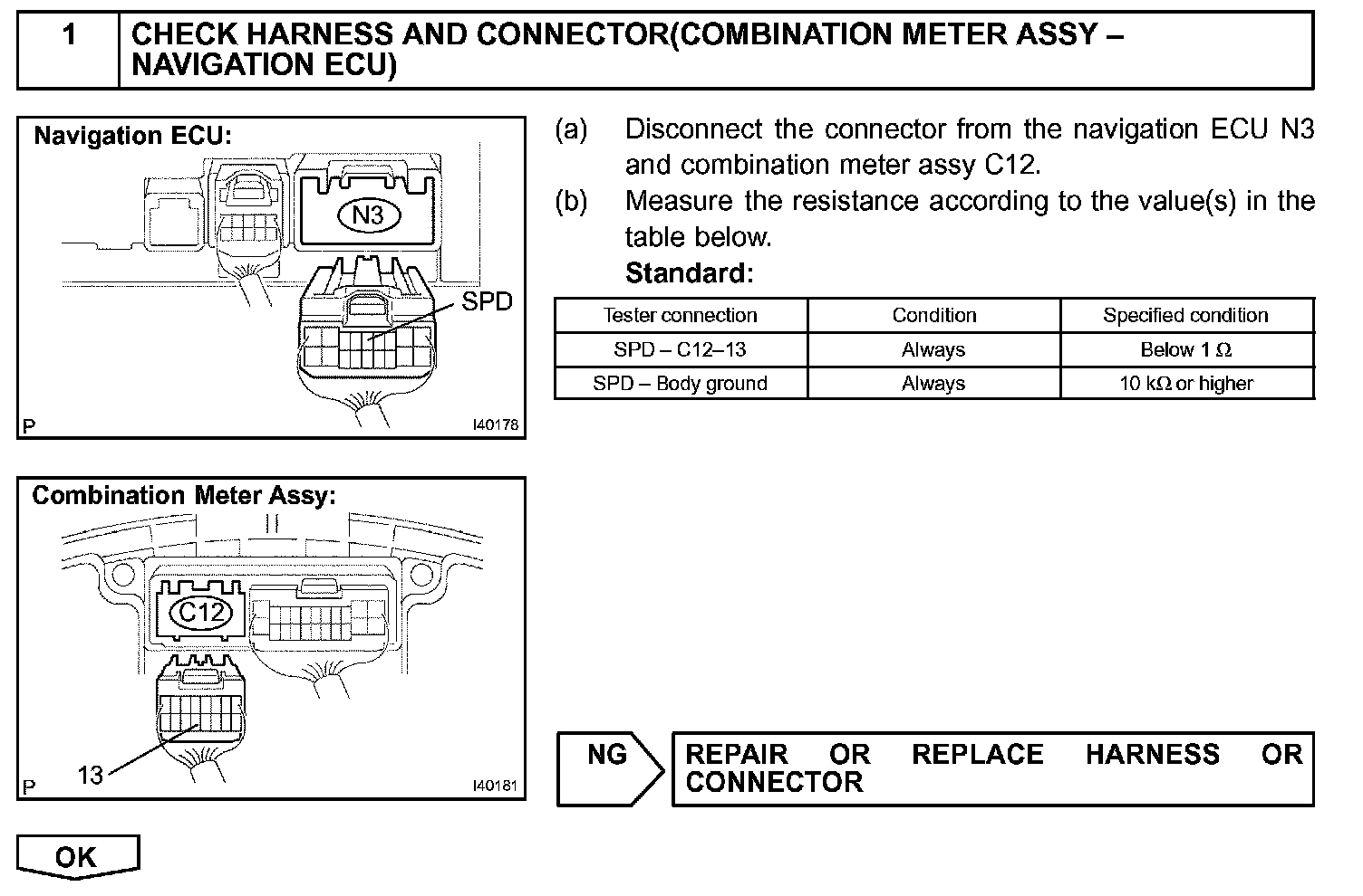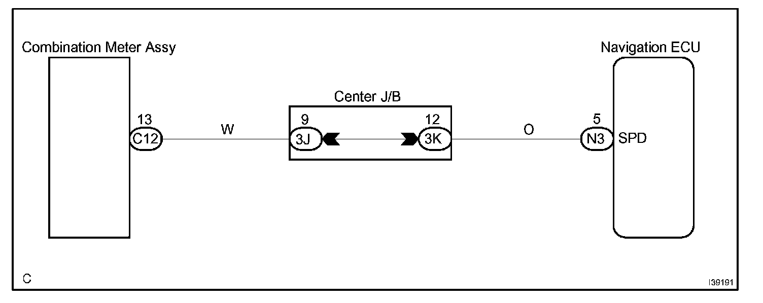Speed Signal Circuit (Navigation ECU - Combination Meter Assy)