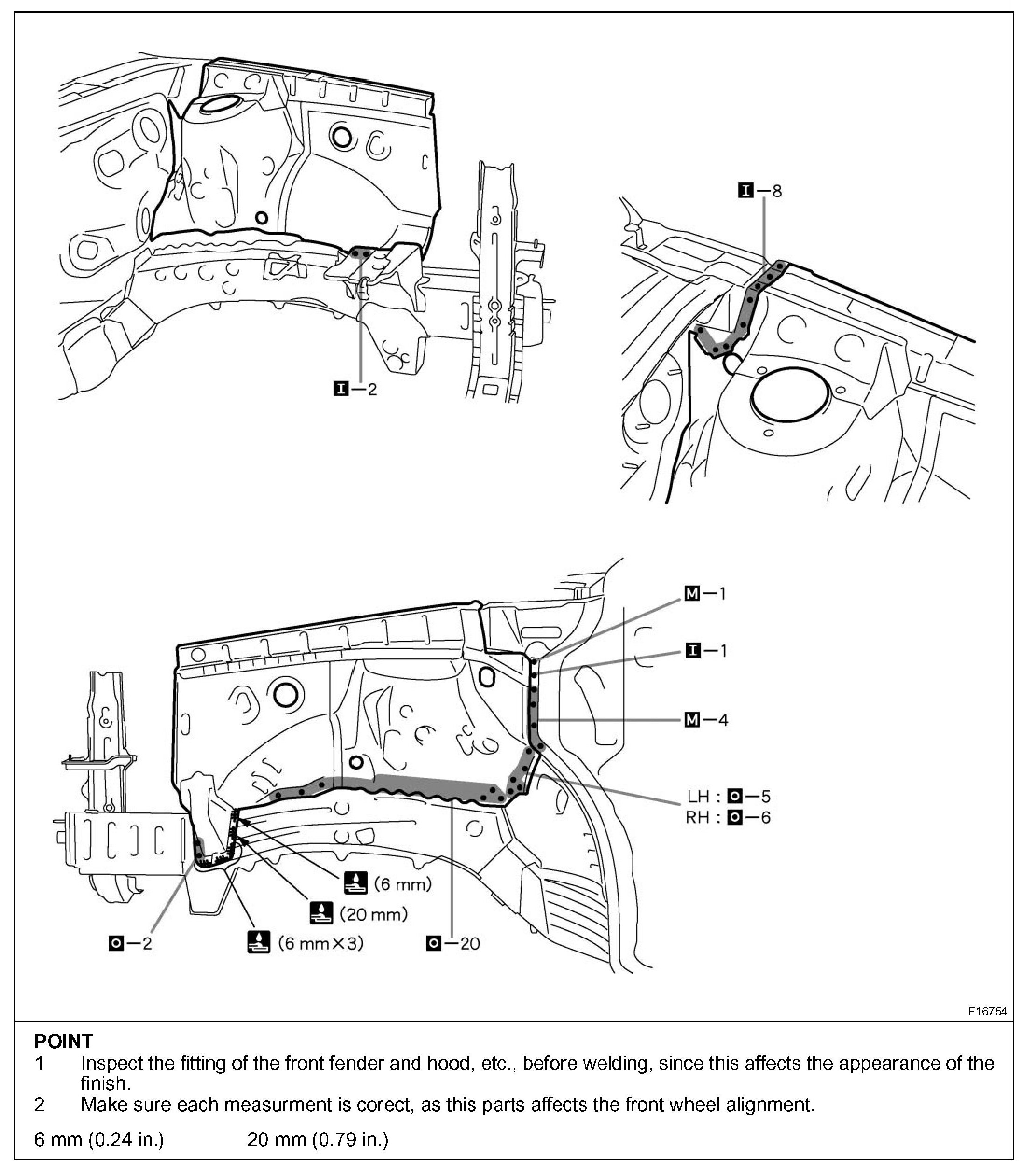 - Inspect the fitting of the related parts around the new parts before welding. This affects the appearance of the finish.