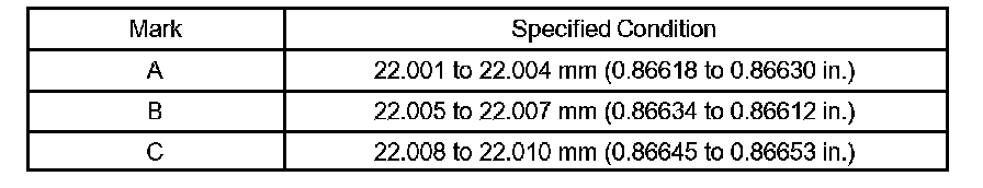Pin hole bush diameter: 22.001 to 22.010 mm (0.8662 to 0.8665 inch)
