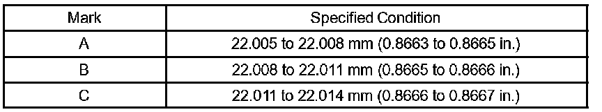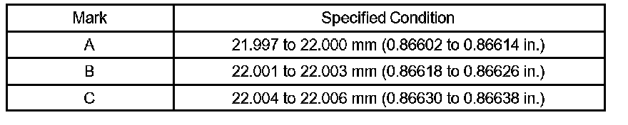 Piston pin diameter: 21.997 to 22.009 mm (0.8660 to 0.8665 inch)