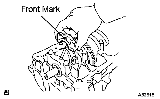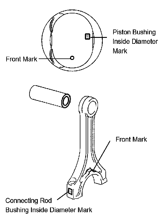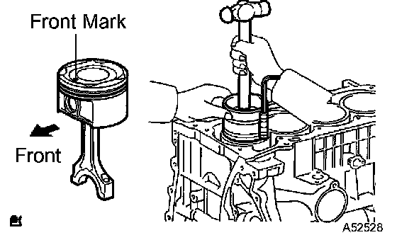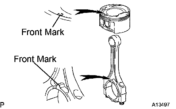 c. Align the front marks of the piston and connecting rod, and push in the piston with your thumb.
