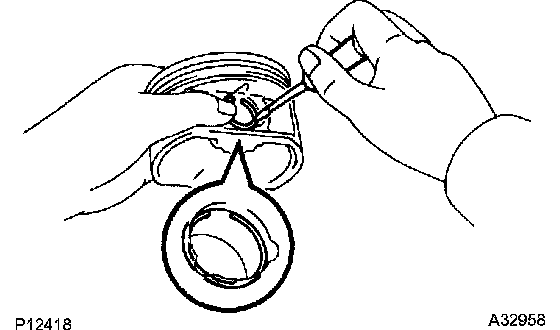 a. Using a small screwdriver, install a new snap ring at one end of the piston pin hole.
