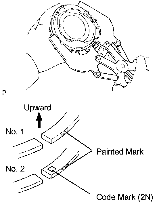 NOTICE: Install the compression ring No. 2 with the code mark (2N) facing upward.