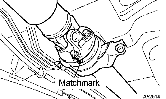 a. Align the matchmarks on both the flanges of the front propeller shaft and intermediate shaft, then install and tighten the 4 bolts, 4 washers and 4 nuts.