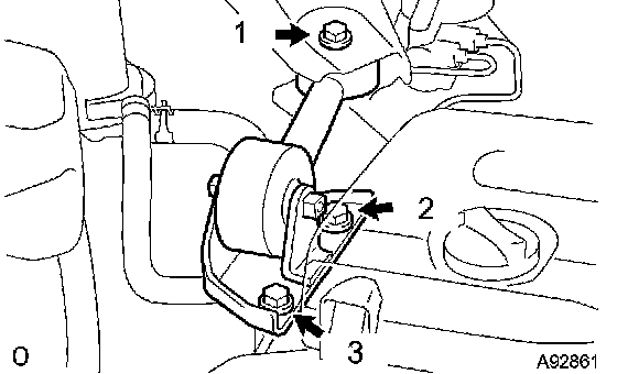 HINT: First, loosely install bolts (1) and (2) with your hand. Then use a wench to install bolt (3). Finally, tighten bolt (2) and (1), in that order.