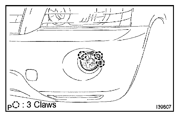 b. Disengage the 3 claws, and remove the fog lamp assembly LH.