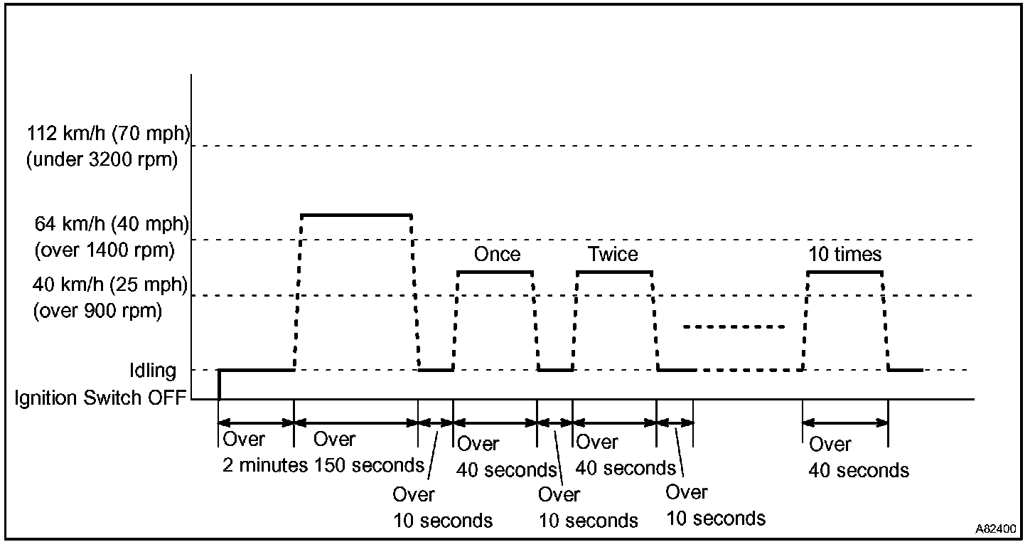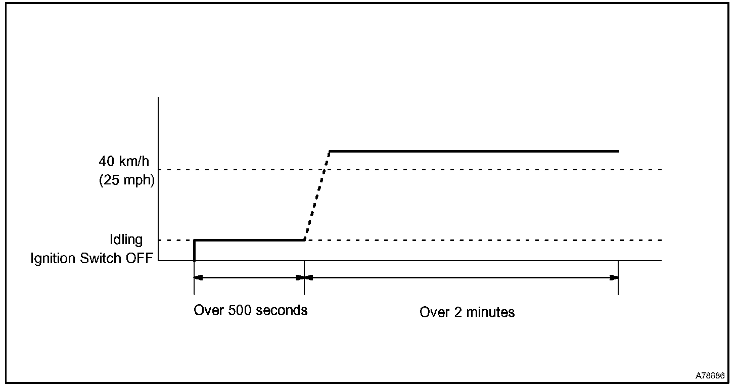 If IAT was less than 10 °C (50 °F) when the engine was started, drive the vehicle at 40 to 55 mph (64 to 88 km/h) for an additional 4 minutes.