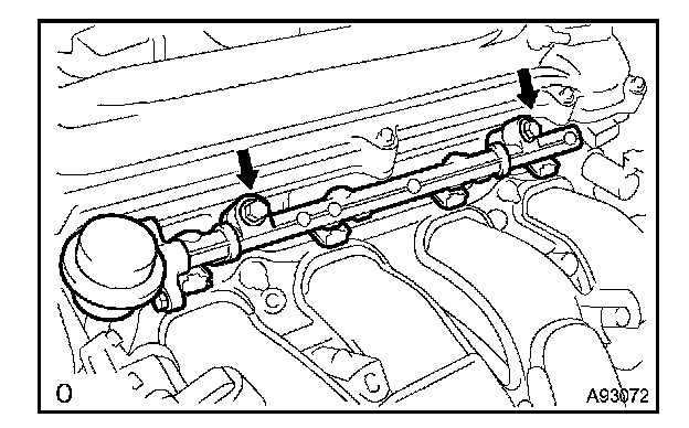 e. Tighten the 2 bolts holding the delivery pipe to the cylinder head.