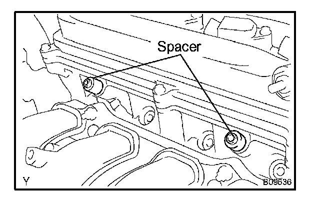 a. Place the 2 spacers in position on the cylinder head.