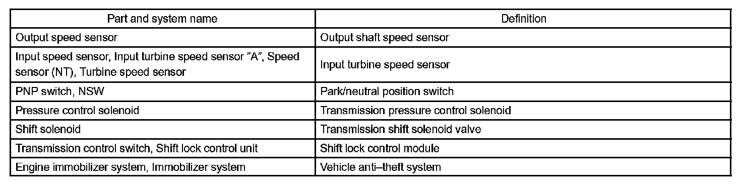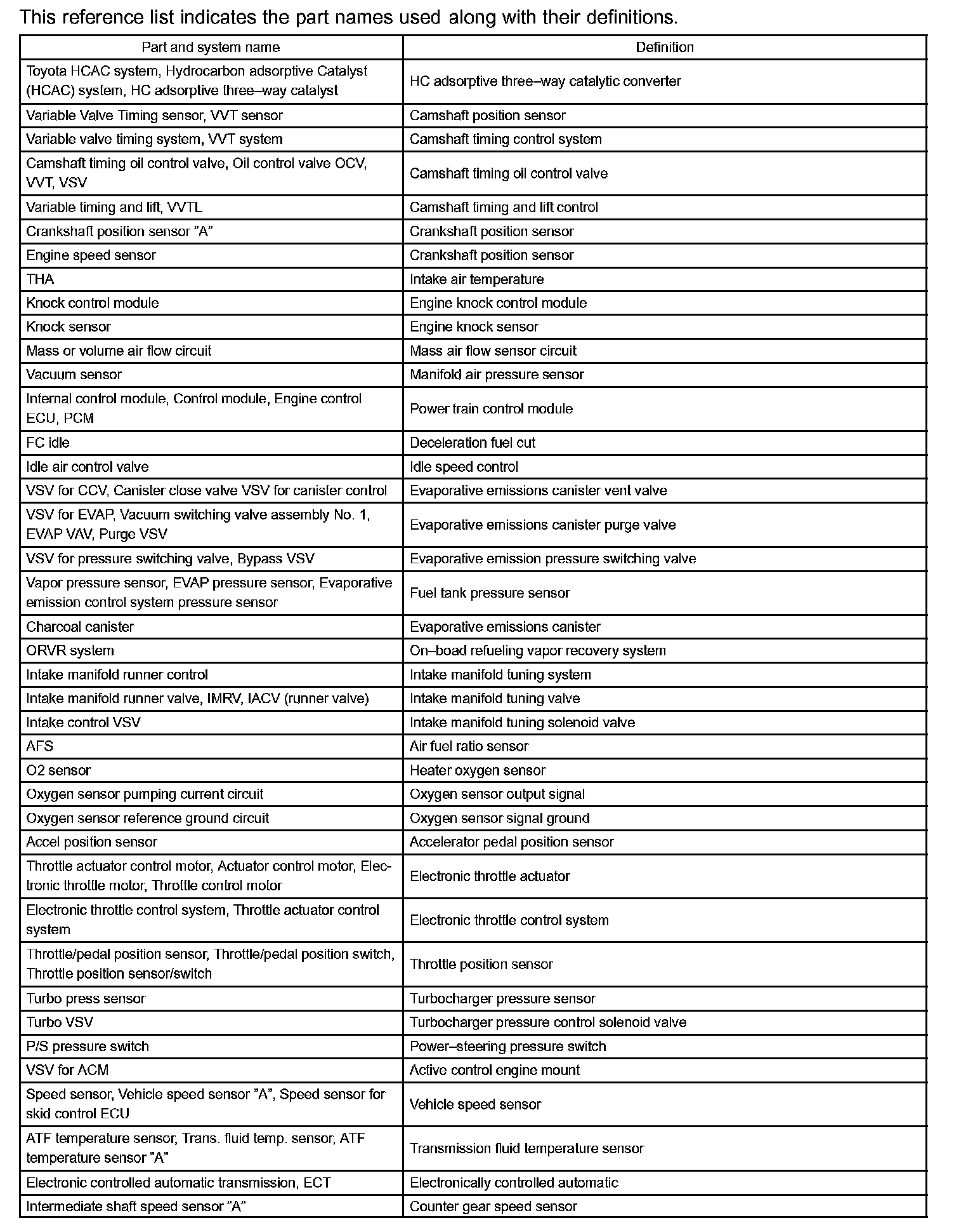 Toyota Part And System Name List Part 1: