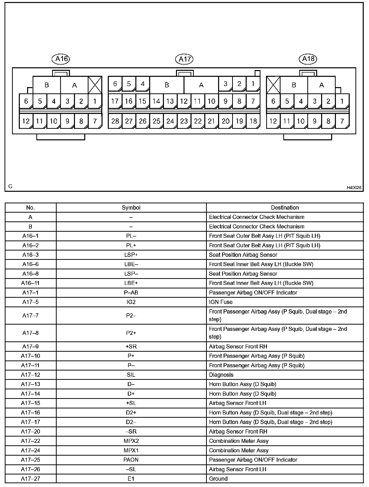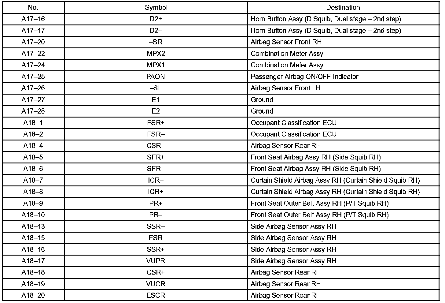 Terminals Of Control Module/Pinouts - Airbag Sensor Assy Center (w/o Side And Curtain Shield Airbag) Part 2: