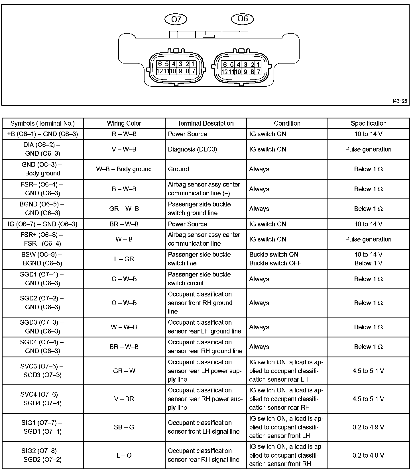 Terminals Of Control Module/Pinouts - Occupant Classification ECU Part 2: