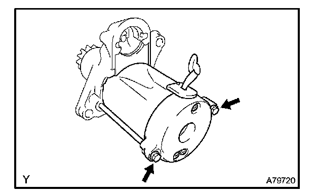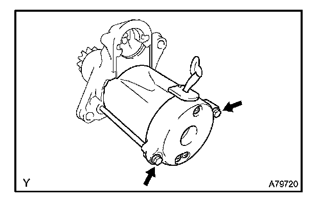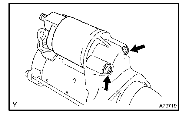 b. Remove the 2 screws holding the magnetic switch to the starter drive housing.