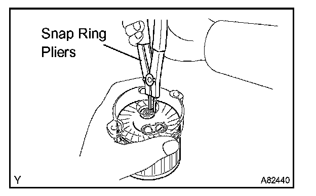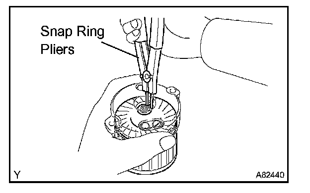 a. Using snap ring pliers, remove the snap ring and plate washer.