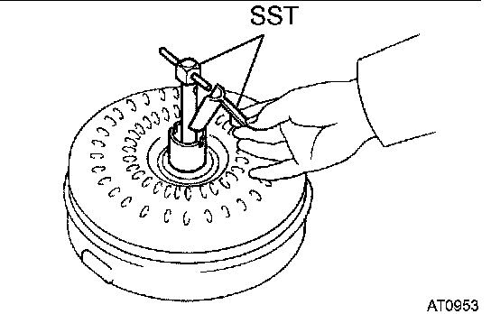 2. Install SST so that it fits in the notch of the converter hub and outer race of the one-way clutch.