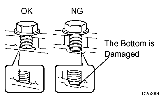 1. When any marks due to interference are found on the end of the bolt for the torque converter clutch and on the bottom of the bolt hole, replace the bolt and the torque converter clutch.