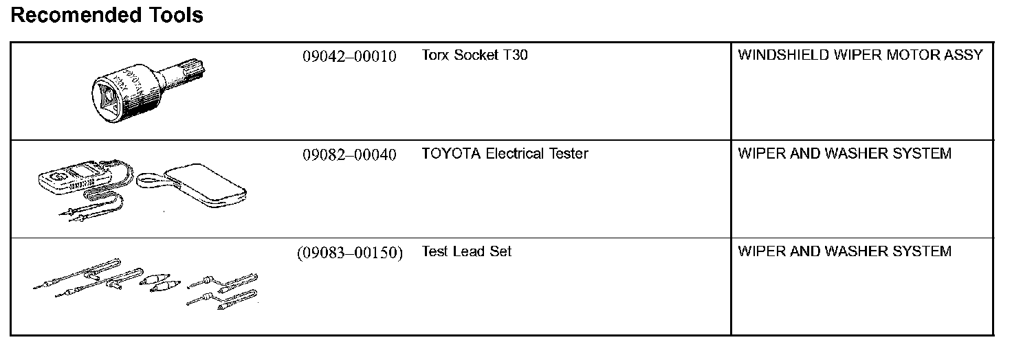 Wiper & Washer - Recommended Tools: