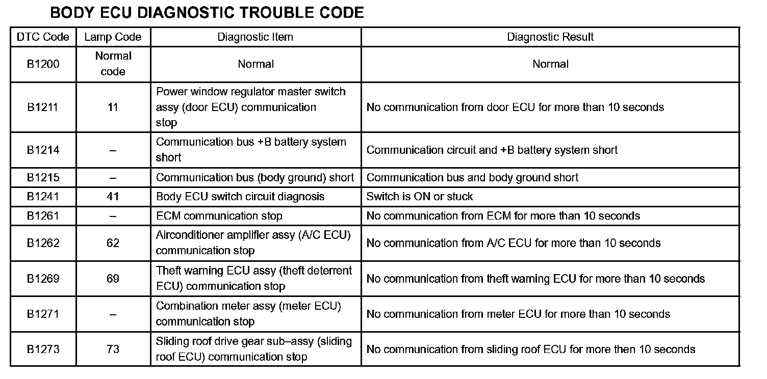 BODY ECU DIAGNOSTIC TROUBLE CODE