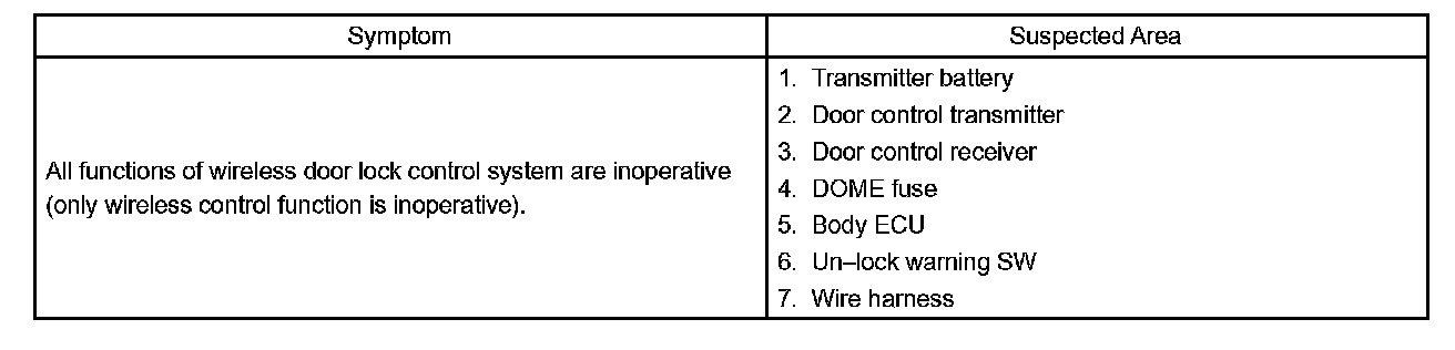 Problem Symptoms Table
