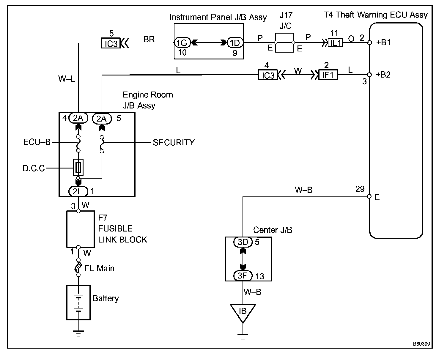 This circuit provides power to operate the theft deterrent (warning) ECU.