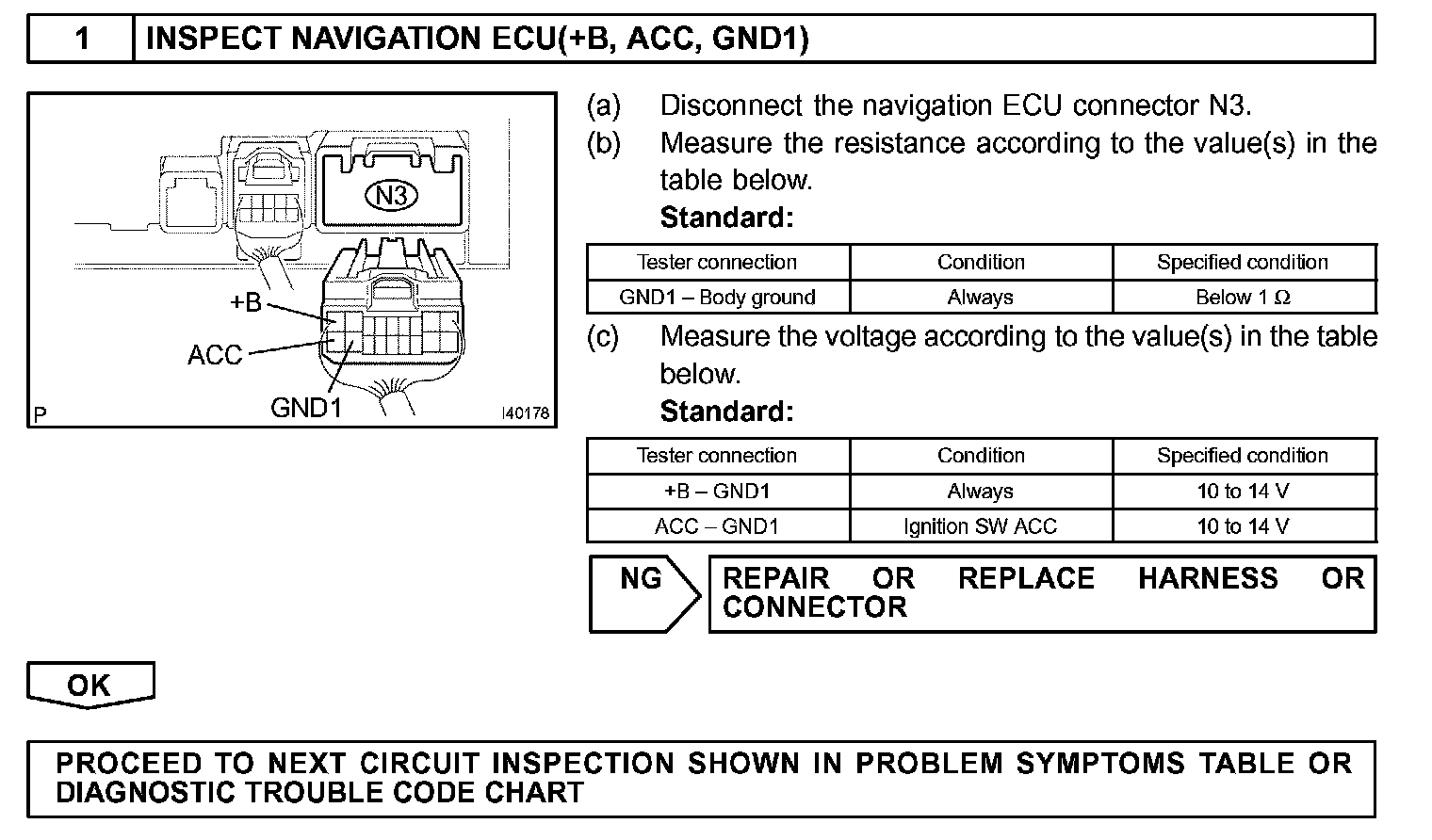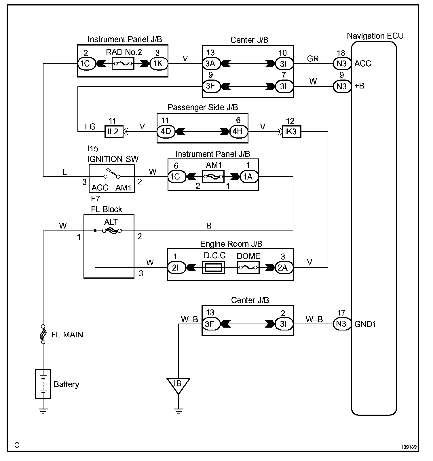 This circuit provides power to the navigation ECU.