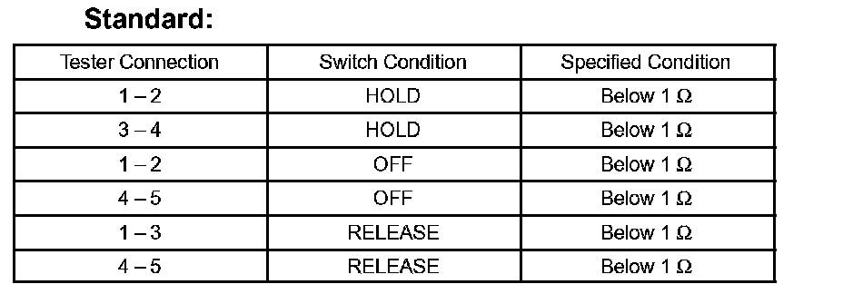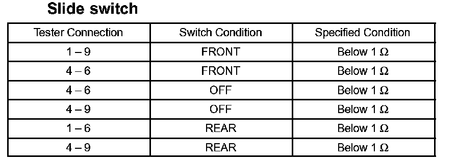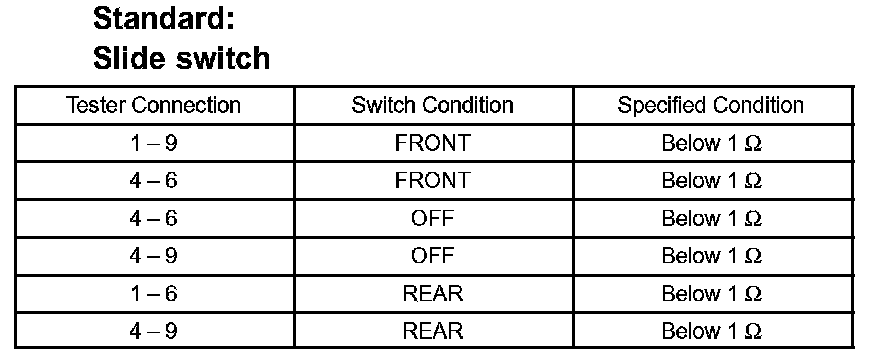 If the result is not as specified, replace the switch assembly.