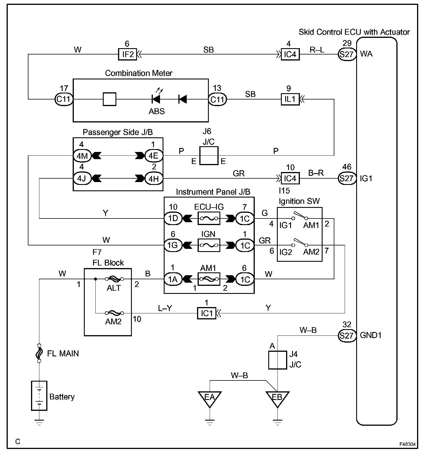 ABS WARNING LIGHT CIRCUIT (REMAINS ON)CIRCUIT DESCRIPTION