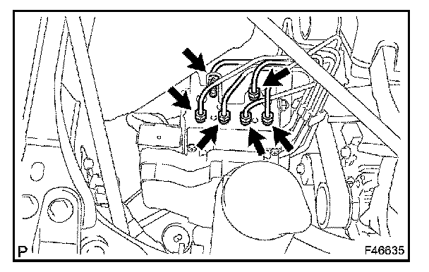 (a) Using SST, disconnect the 6 brake tubes from the actuator with bracket.