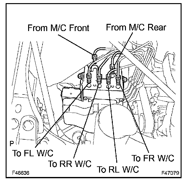 (c) Using SST, connect each brake tube to correct positions of the actuator with bracket, as shown in the illustration.