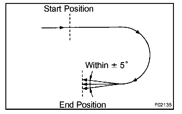 1. Shift the shift lever to the D position and drive the vehicle at a speed of approx. 3 mph (5 km/h), turn the steering wheel either to the left or right 90 ° or more, and maintain a 180 ° circular drive for the vehicle.