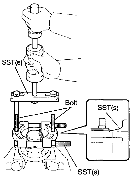 b. Using a pin punch and hammer, drive out the 2 pins and remove the 2 attachments from SST(s).