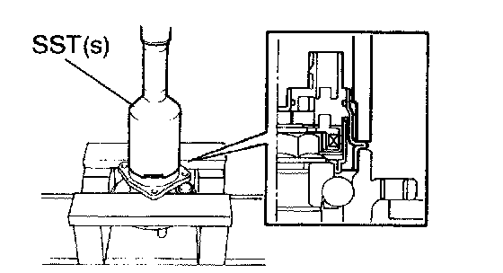 c. Using SST(s) and a press, install the skid control sensor onto the hub & bearing assembly.