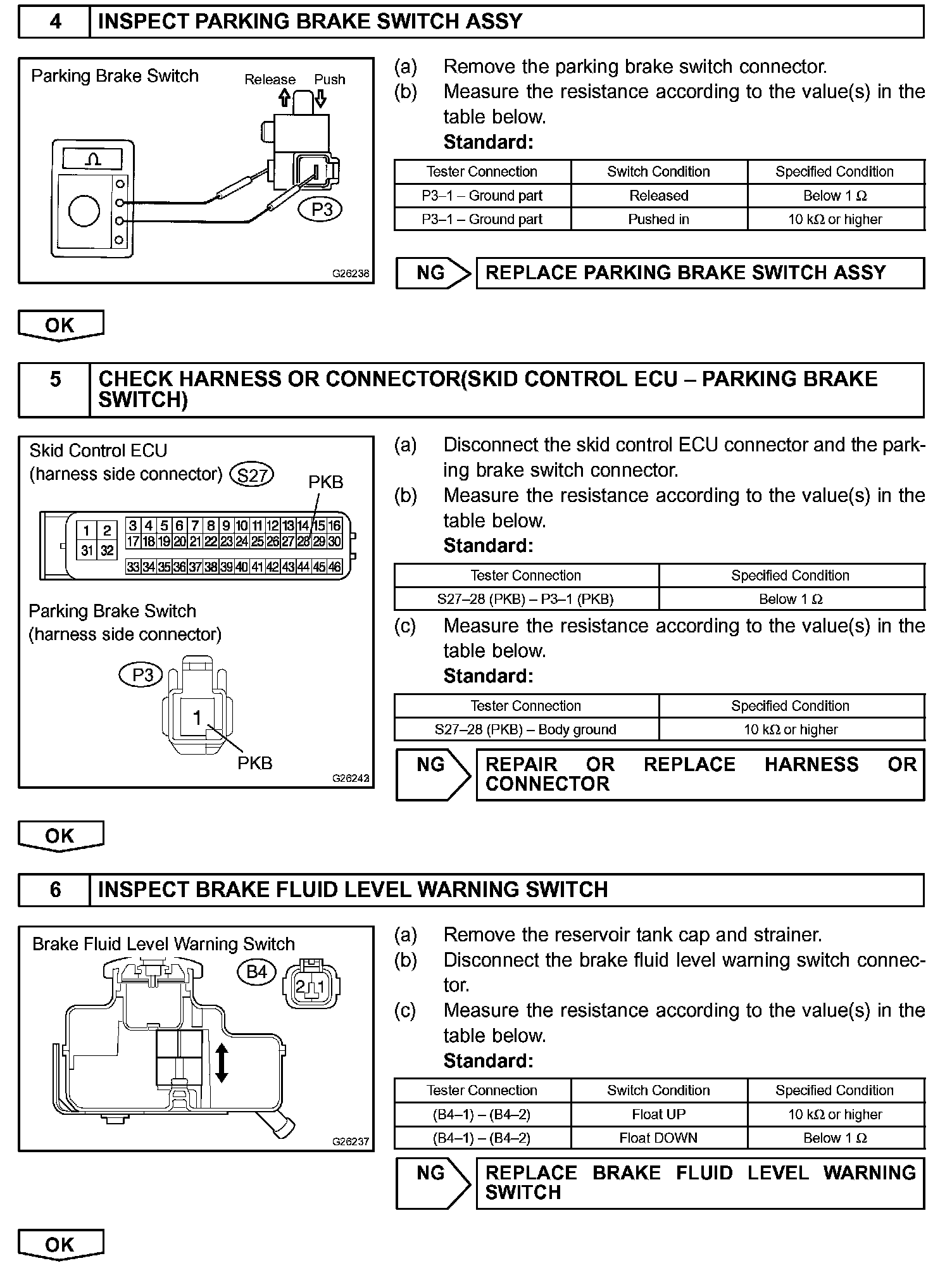 HINT: When releasing the parking brake, set the chocks to hold the vehicle for safety.