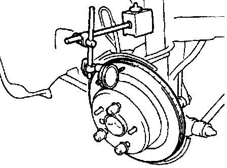 c. If the disc runout is equal to maximum value or greater, check the bearing play in the axial direction and check the axle hub runout. If the bearing play and axle hub runout are not abnormal, adjust the disc runout or grind it on a "On-car" brake lathe.
